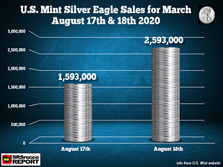 With Silver Eagle demand continuing to be RED HOT, the U.S. Mint sold another million of the coins yesterday. This is the biggest one-day sales increase in six months. It seems as if the U.S. Mint is now able to ramp up production of both Gold and Silver Eagles. In...