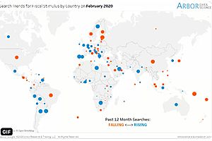 Search interest (via this moving infographic) in fiscal stimulus has increased; unsurprisingly, more so in Europe @DataArbor