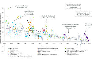 Could interest rates enter negative territory permanently? This chart plots trend data over 700 years, showing that it could be a possibility.