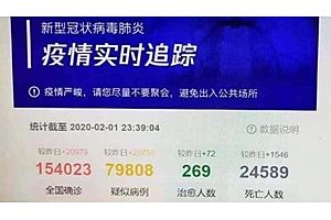 Tencent's "Epidemic Situation Tracker" briefly showed confirmed coronavirus cases as of Feb 1 at 154,023, 10 times the official figure at the time, with a death toll of 24,589... and then everything quietly changed.