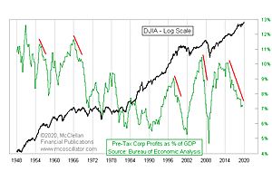The primary driver of stock prices is supposedly earnings, right? So how is it that earnings as a percentage of GDP have been falling since a peak in late 2014, and yet the major averages like the DJIA and SP500 are up 60% since then?