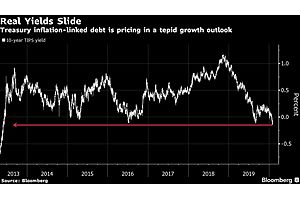 t’s been more than six years since the U.S. bond market’s purest read on the global growth outlook was signaling this much concern. The so-called real yield on 10-year inflation-linked Treasuries fell on Friday to negative 0.147%, its lowest since 2013, when Europe’s sovereign debt crisis...