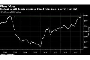 The global stash of gold in exchange-traded funds hit the highest level in seven years as the impact of the novel coronavirus on markets and sentiment reinforced demand for havens at a time of low interest rates, and the addition of just a few more tons would lift the total to a record.The