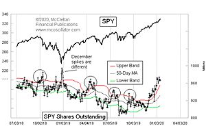 Check out the other instances when this indicator has gone above that upper 50-1 band. You will notice that all of them in this chart except one were associated with meaningful tops leading to noticeable corrections.