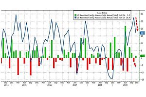 Due to the downward revisions, new home sales are following the trend of existing home sales lower... as the median home price soars.
