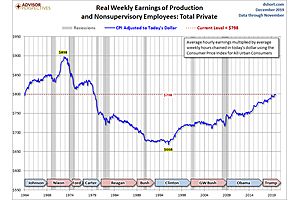 The latest hypothetical real (inflation-adjusted) annual earnings are at $39,915, down 11.1% from 45-plus years ago.