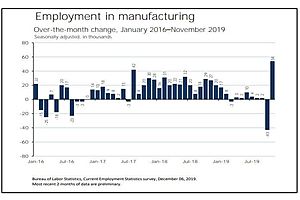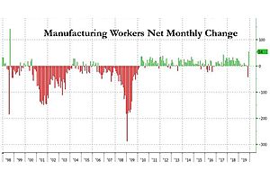 54K manufacturing workers were added in November, the most in over two decades, or since 1998, as a result of about 41K GM striking workers returning to their jobs.