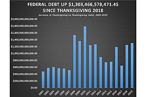 The federal debt has increased by $1,303,466.578.471.45 since last Thanksgiving, according to data released by the U.S. Treasury.