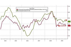 Amid worries that the US consumer is tapped out (or maxed out), it appears that despite disappointment at no gain in income, spending rose 0.3% MoM (as expected)