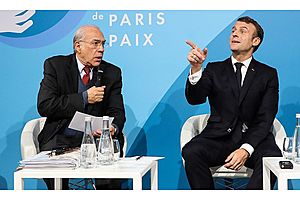 The OECD proposals would force big companies to pay more in countries where they make 'significant' sales. Pictured: OECD's secretary general and French President in Paris earlier this month.