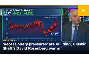 Gluskin Sheff's David Rosenberg expects negative growth to hit the U.S. economy sooner than Wall Street anticipates.