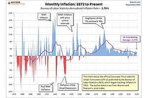 The Consumer Price Index for Urban Consumers (CPI-U) released yesterday morning puts the year-over-year inflation rate at 1.76%. It is below the 3.76% average since the end of the Second World War and above its 10-year moving average, now at 1.77%.