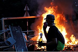 Hong Kong police fired tear gas on Tuesday in the Central financial district, over the harbour in Mong Kok and at universities to break up pro-democracy protests which they said were leading the city to the “brink of total breakdown”.