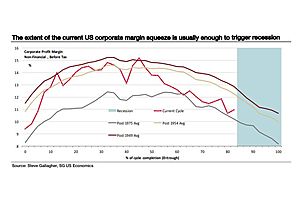 Our US economist Steve Gallagher shows below that, if history is any guide, a recession is due just about now. Yet investors fear of recession has all but evaporated.