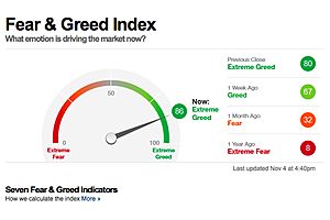 During the last five trading days, volume in put options has lagged volume in call options by 47.63% as investors make bullish bets in their portfolios. This is among the lowest levels of put buying seen during the last two years, indicating extreme greed on the part of investors.