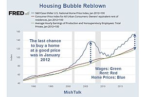 Renting a Home: Increases in National Average Rent have generally outpaced year-over year hourly earnings since 2011. Buying a House: House prices have risen far faster than earnings since 2012.