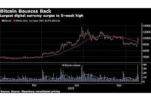 Bitcoin jumped on Monday, bringing its rally since Thursday to 26%, after China’s government threw its backing behind the digital coin’s underlying ledger technology.