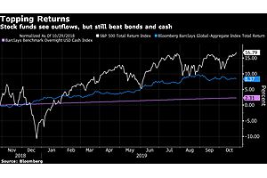 The outflow from U.S. equity funds this year has been the biggest since 2008, relative to the flood of money into cash and bonds, according to Goldman Sachs Group Inc.That still leaves cash exposures “near historical lows,” according to Goldman strategists led by David Kostin. At 12%,