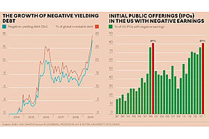 The first indicator is the percentage of new companies listing in the US with negative earnings. The latest level matches the peak last seen at the height of the dot-com bubble in 2000.