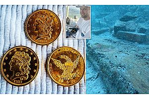 Treasure hunters have struck gold while investigating a wreck thought to have sunk with tens of millions of dollars worth of currency. The Steamship North Carolina sank on July 25, 1840.