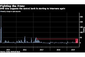 Swiss National Bank data suggest it pumped 3.8 billion francs ($3.9 billion) into markets last week to control the franc, sending its sight deposits to a record high.