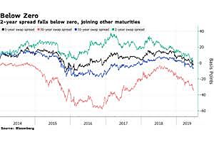 Two-year swap spread turned negative, joining rest of curve. Support rooted in regulatory relief has faded into memory. The transformation of the swap spread curve is complete.