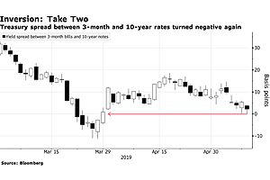 Here we go again. The 10-year – 3-month Treasury curve has turned negative again.