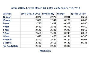 Yields dropped across the board today as the Fed said it would be patient. A "Dot Plot" shows no hikes expected in 2019.