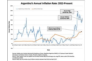 Argentina released its February inflation rate, and inflation spiked again. The official annual inflation rate jumped to 51.3%/yr. This isn't a surprise. I measure Argentina's inflation each day, and, by my measure, the annual inflation rate is 100%/yr.