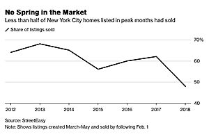 Less than half of the New York City homes offered for sale last spring have found buyers, a new study from StreetEasy shows.