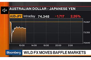 "In those 7 wild minutes from about 9:30 a.m. Sydney, the yen jumped almost 8 percent against the Australian dollar to its strongest since 2009, and surged 10 percent versus the Turkish lira."