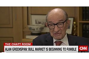 "The former Federal Reserve chairman who famously warned more than two decades ago about 'irrational exuberance' in the stock market doesn't see equity prices going any higher than they are now."