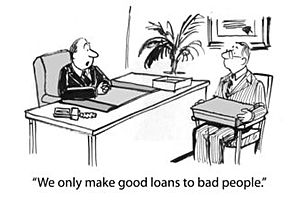 "When smart bankers lend money, they look at the loan in terms of how a bank auditor would grade the loan. They keep the prime loans and sell the rest to get them off their books. They package a bunch of risky loans with just enough better ones to get a good rating from the rating agencies."