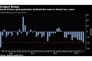 And the trend is about as ugly as it gets. Long one of the most reliable sources of gold output on Earth, South Africa's massive gold mines are increasingly tapped out, and there have been no new discoveries to replace them.