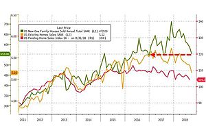 "Remember this is the first month that takes the impact of the latest big spike in rates - not good! This is a disastrous print: August's 629k SAAR was revised drastically lower to 585k and September printed 553k (SAAR) massively missing expectations of 625k (SAAR)."