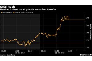 "Bullion climbed above $1,200 an ounce as fears about the impact of a burgeoning trade war saw a selloff in U.S. stocks spread through Asia and Europe. The dollar fell to its lowest since Oct. 2."