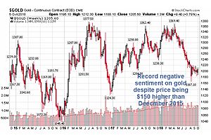 Perhaps most importantly, gold sentiment is at record lows. The last time it was this negative was December 2015, just prior to gold rising over 30%.