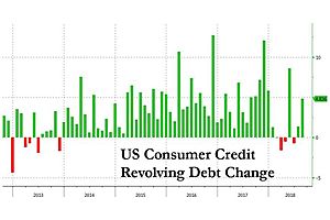 "After a two-month dormancy in using credit cards, American consumers returned to doing what they do best - spending money they don't have - with revolving credit jumping by $4.8 billion, the highest monthly increase since May, and the second highest of 2018. "