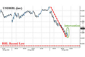 Brazil joins the ever-expanding cast of emerging-market countries with worsening currency crises. "Intervention" and "liquidity providing" are nothing more than euphemisms for buying fiat currency at an artificially high price that the free market is rightfully unwilling to pay.