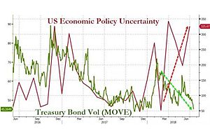 Yet more evidence that central bank interference, combined with headline-news-chaos fatigue, has resulted in a stupefied, punch drunk, utterly dazed treasury market. As US economic policy uncertainty spikes sharply higher, the 10-Y "risk barometer" barely has a pulse.