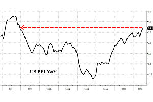 US Producer Prices soared to +3.4% YoY in June - far above the expectation of +3.1% - and to the highest level since November 2011. The sort of number that makes it impossible for the Fed to stop raising rates, even into a weak economy and trade war.