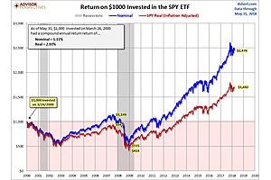 This update is in response to a standing request for real (inflation-adjusted) charts of the S&P 500, Dow 30, and Nasdaq Composite. Here are two overlays —