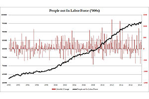 The number of people not in the labor force increased by another 170K, rising to 95.915 million, a new all time high.