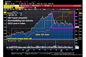 Homebuilding stocks have been struggling with interest rate increases, particularly once residential mortgage rates rose above 4.30% (MBA 30-year rate).