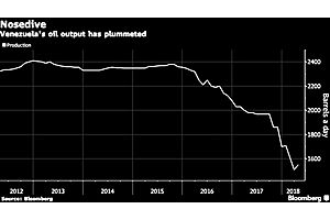 Holder of the world’s biggest oil reserves, has seen its output fall almost 40 percent since 2015, to 1.5 million barrels a day, amid political turmoil & an economic meltdown