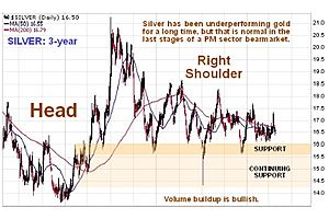"With the price down close to support and the continued volume buildup, silver looks like a coiled spring here."