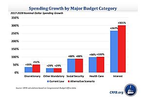 Federal debt interest payment expenditures projected to increase 267% or more by 2028.