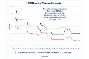 Despite a rebound in retail Sales the GDPNow forecast slips to 1.9 percent. Real final sales are 0.9 percent.