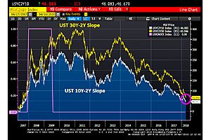 (46 BPS On For The 10Y-2Y Slope, Lowest Since Sept ’07) The Treasury yield curve, that is. The 10Y-2Y slope is now down to 46 basis points ... and flattening. The same for the 30Y-2Y slope as The Fed raises their target rate faster than they are decreasing their balance sheet.