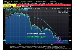 Fannie Mae and Freddie Mac stock crashed starting in Q4 2007 culminating in both being placed into conservatorship with their regulator, FHFA. Where they remain today.